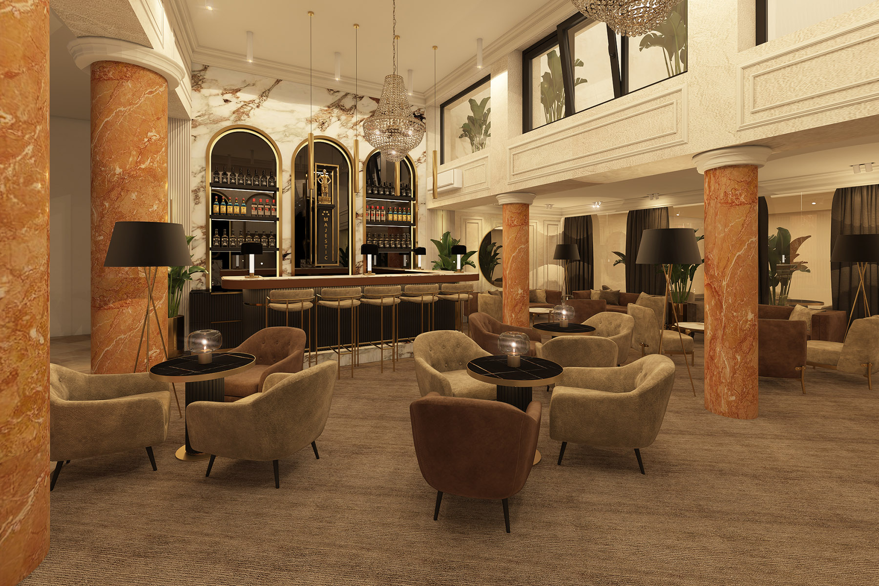 Redizajn lobby bara hotela 'Majestic' na Obilicevom Vencu. Glavni izazov se sastojao uklapanju novog 'retro' dizajna u postojeci enterijer, uz postovanje postojecih stilskih i arhitektonskih elemenata ostatka ovog prestonickog hotela sa tradicijom dugom gotovo 100 godina